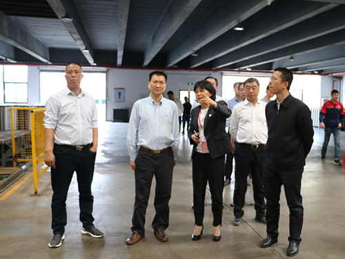 5月7日,杭州市委常委、常务副市长戴建平,建德市长朱欢,副市长俞伟,副市长夏喜生一行考察东方77体育杭州生产基地,开展“走亲连心”服务企业调研运动。