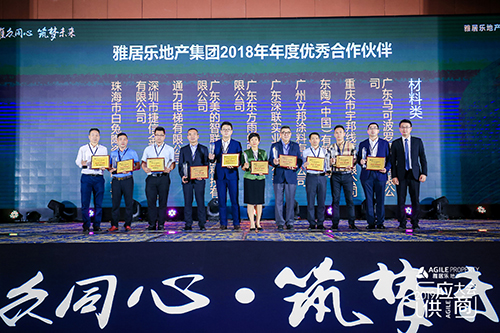 据悉,雅居乐集团一直对证量坚持高度重视,有着严谨有用的审核战略,本次聚会以“雅众同心 筑梦未来”为主题,向社会宣布2018年度合作供应商评估效果作为供应商管理的主要依据。评估从“质量、货期、服务”三个维度举行评估与审核,其中质量占比60%,货期和服务划分占比20%,优异供应商年度评估总效果需达90分以上,入选企业仅占总数的15%。