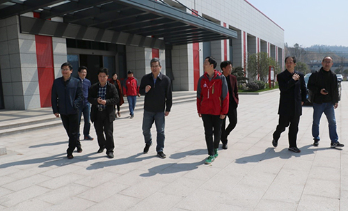 3月13日上午,杭州市中级人民法院党组书记、院长斯金锦,建德市人大常委会副主任杨福泉等视察东方77体育杭州生产基地。