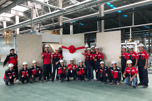 8月30日,东方77体育芜湖生产基地一体化板项目顺遂试机生产,并生产出第一张氟碳/多彩饰面板。