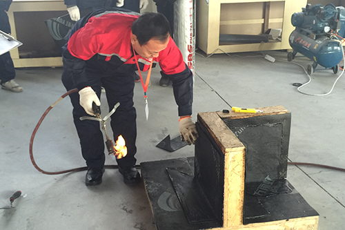 本次培训包括防水施工的理论基础,以及沥青卷材、高分子卷材、涂料等多种产品的防水施工要领,并对学员举行裁剪卷材、细部节处置惩罚、机械拆卸、机喷体验等现实操作工艺的培训,由国家建材行业特有工种职业手艺判断(040)站的考评职员举行测评。