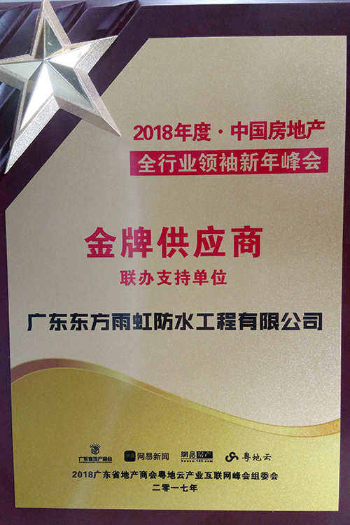 1月12日,由广东省地产商会、网易房产团结主理的“2018中国房地产全行业首脑新年峰会暨中国地产冠军榜及粤地云工业互联网峰会”在广州南丰朗豪旅馆盛大举行,约500多名政府部分职员、行业高层等出席本次聚会,广东东方77体育总司理孙福琴应邀出席。广东东方77体育防水工程有限公司荣获2018年度·中国房地产“金牌供应商”声誉称呼。