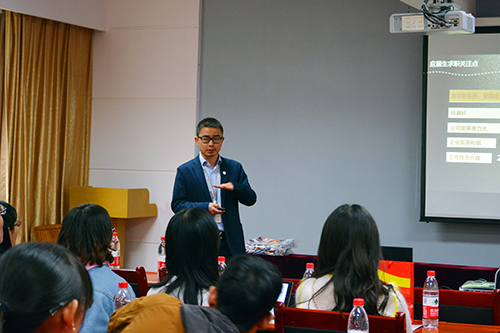 接着,人力资源部司理刘平辉依次从薪酬、福利、培训等方面深入解说,针对应届结业生可能会遇到的职场难题、疑心,重新员工导师制、新员工生长作育系统等方面有针对性的解答。宣讲竣事后,同砚们起劲互动,团结自身专业及岗位特点等提问咨询、提交简历。 本次校园招聘面向云南省各高校学生招聘,岗位以储备干部及销售岗位为主,公司将第一时间筛选简历并通知安排有关职员面试。