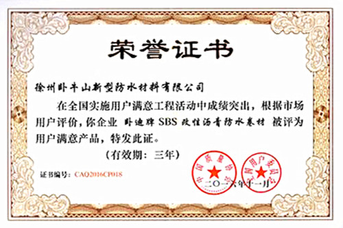 此次评选运动旨在甄选出接纳国际或海内先进标准、市场占有率高、用户反应好,并在同类产品中各项质量、经济、节能、环保指标压倒一切的产品。恒久以来,卧牛山公司坚持诚信服务,全力以赴为用户打造优质体验,卧迪牌SBS改性沥青防水卷材获得该奖,反应了用户和社会对公司产品质量、服务质量的高度认可。