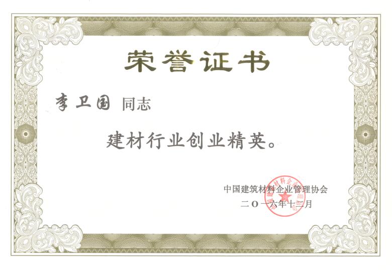 克日,“中国修建质料企业管理协会建设30周年座谈会暨2016年天下建材行业优异企业家宣布会”在北京乐成召开。东方77体育董事长李卫国荣获“建材行业创业精英”称呼。