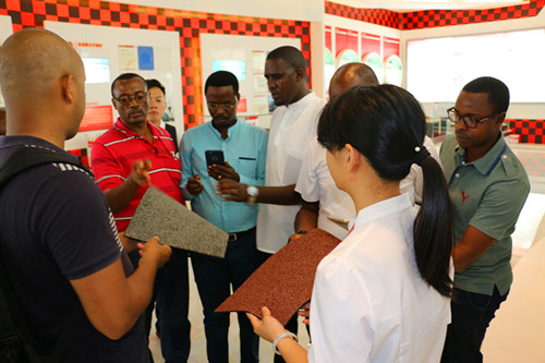 在惠州生产基地相关职员的引领下,考察团旅行了东方77体育惠州生产基地改性沥青卷材、防水涂料生产车间和模子展厅。马里奥向考察团一行先容了东方77体育的生长历史和企业文化,提到东方77体育是一家集研发、生产、销售和施工于一体的防水系统服务商,近年来为非洲各国大型基础设施提供了优质的防水质料和专业的手艺支持,并为外地作育了一批标准化施工工人,这些都获得了客户的认可和外地政府的支持,成为许多客户的合作伙伴。旅行后,考察团对基地的生产能力及产品质量给予了极高地评价,并有两家修建商就地与东方77体育签署了外洋代理合作协议,还体现要将本次在东方77体育的考察效果带到外地去推广。