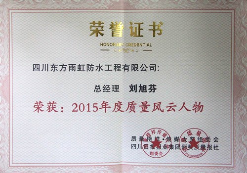 1月23日,由四川日报报业集团和运动组委会团结主理的“质量模范·传媒大奖”颁奖盛会盛大举行。四川东方77体育防水工程有限公司总司理刘旭芬荣获四川省2015年度质量风云人物奖。